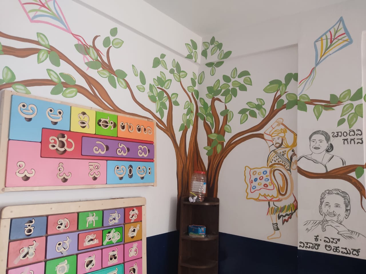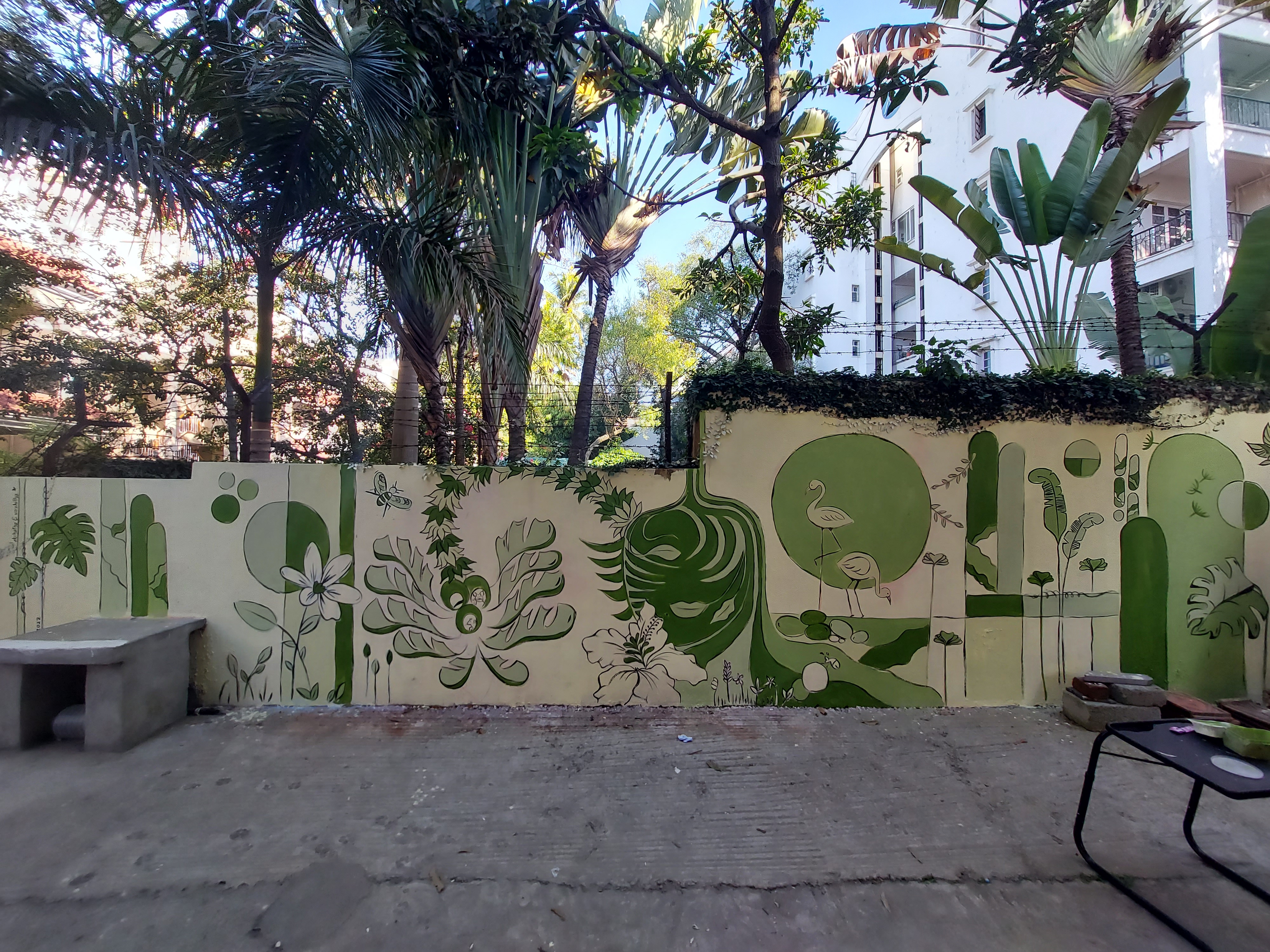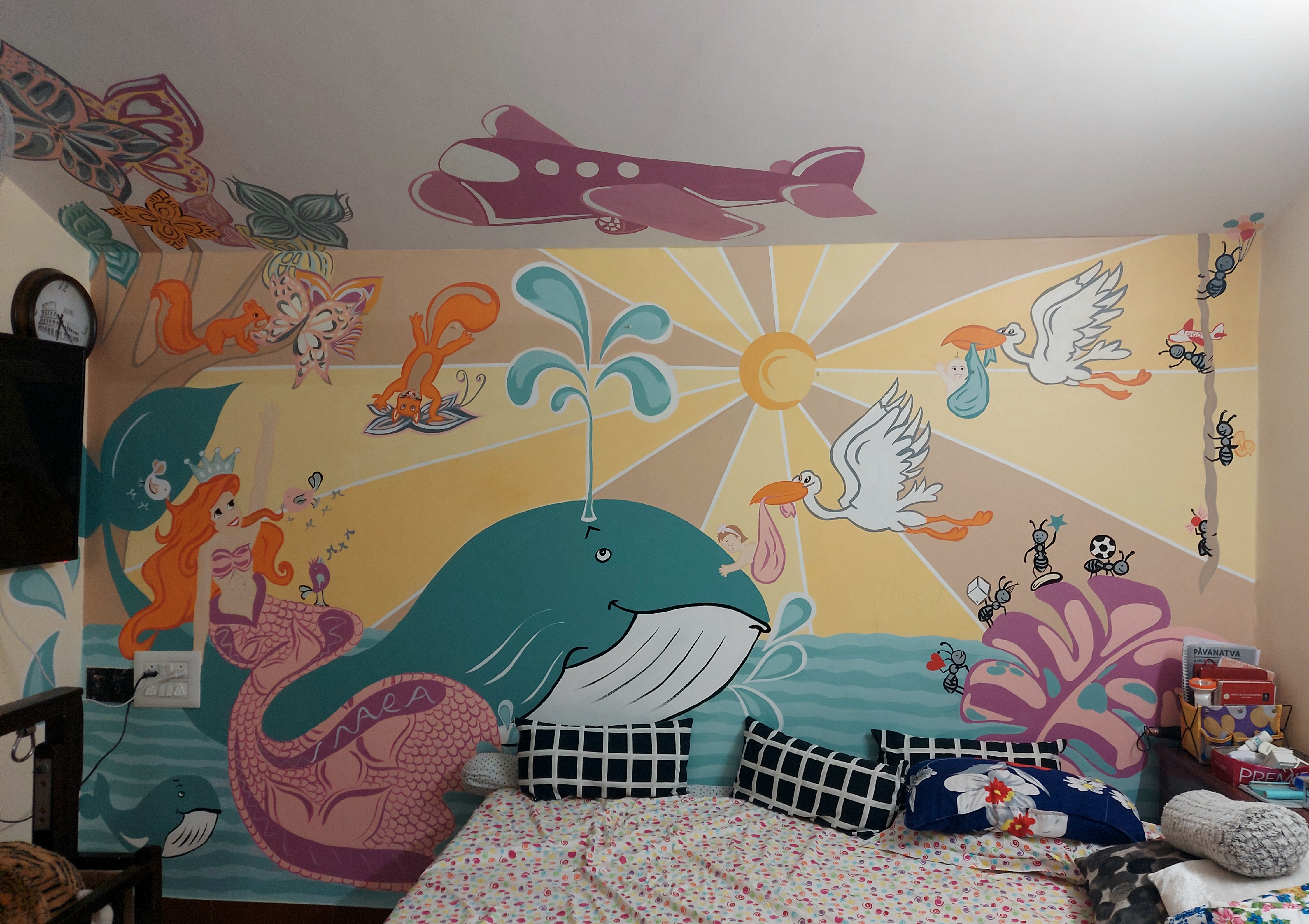 Large-scale murals created for schools, cafes, homes, and public spaces.